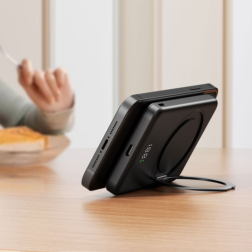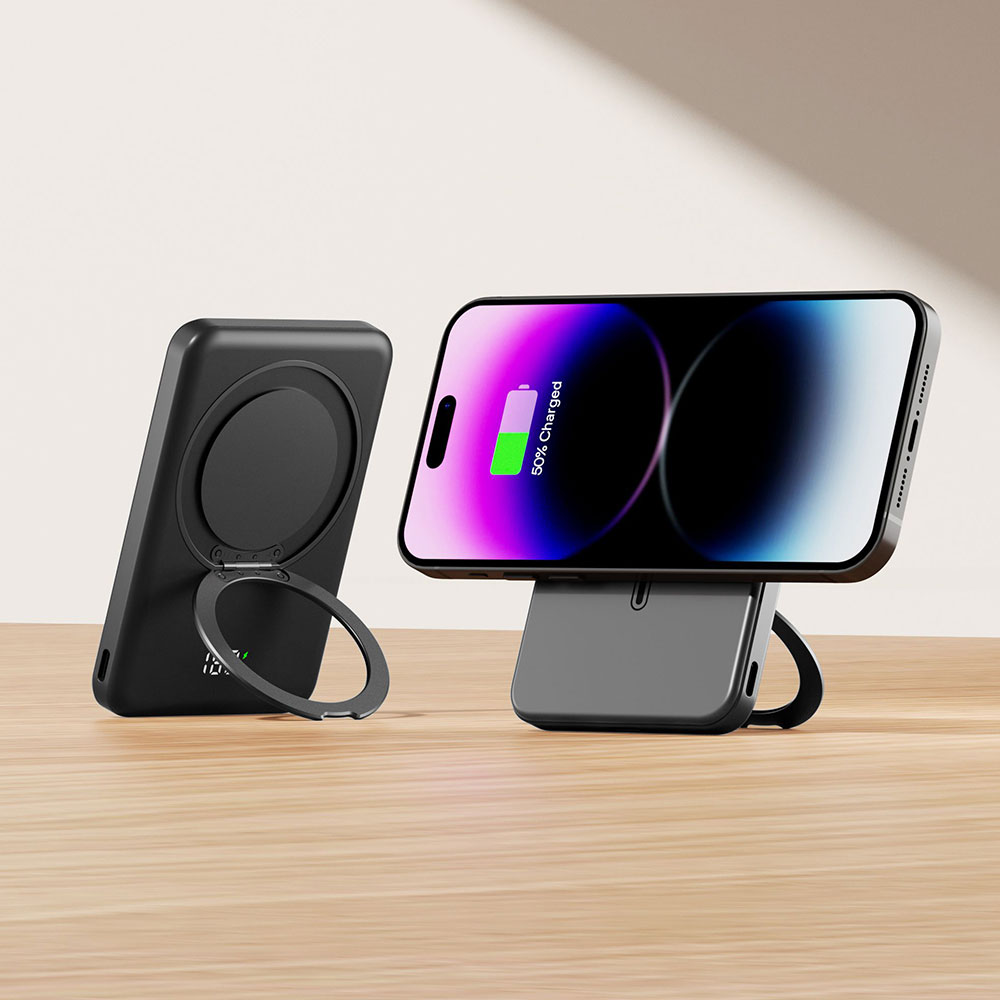 Whether you’re on the move or relaxing, this sleek QI-standard charger delivers cable-free, lightning-fast power with just a simple drop-and-charge. It’s the perfect power bank and phone stand—all in one compact design.